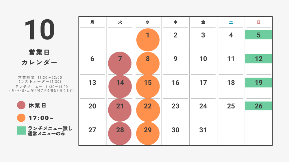 ※ 水曜日は、17:00からの営業となります。